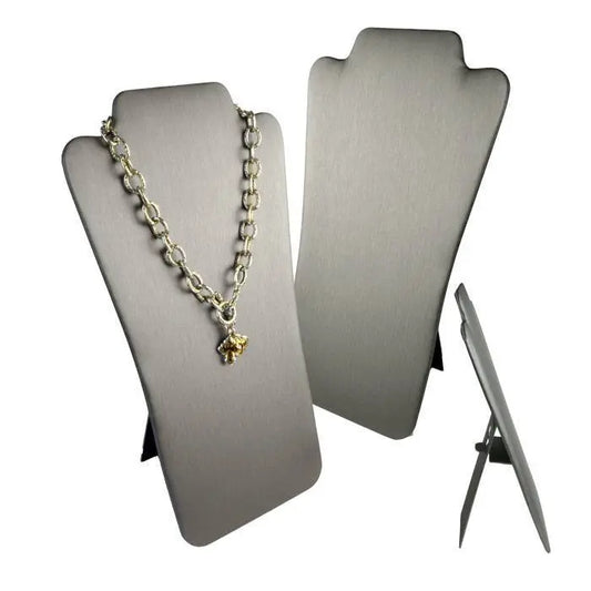 Display your necklaces in style with necklace display easel stands and chain boards. These are great for on-the-go displays and are an important element for a strong display table. They even fold down for easy storage and transportation! Maximize your space with these simple folding necklace jewelry holders. You may also want to take a look at our necklace display busts.